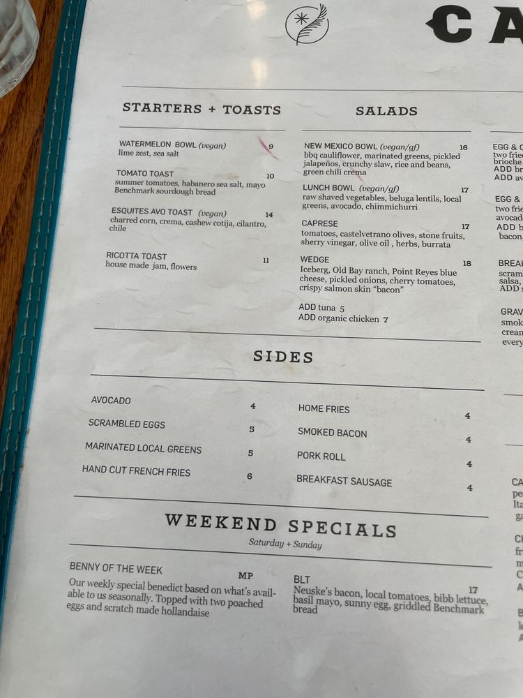 Roasted market vegetables, homefries, sage sausage, pecorino, sunny egg and herbs. Make it Vegan: Vegan Options.